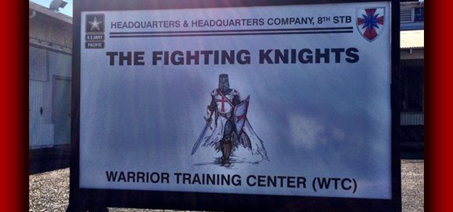 A Christian Crusader Knight adorning the sign of an Army training center in Hawaii is fuel for jihadists' who paint American military missions in the Middle East as a continuation of ancient Christian campaigns against Islam, according to a watchdog group.