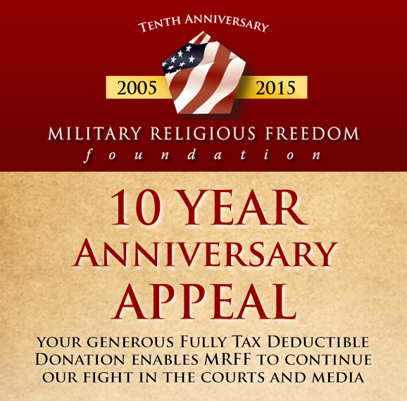 Message From MRFF President and Founder Mikey WeinsteinDear friends and allies, ![]() This month marks a truly momentous occasion: 10 years since the founding of the Military Religious Freedom Foundation! MRFF is the only civil rights organization solely devoted to the separation of church and state in the U.S. Military, serving the faithful and the non-faithful alike. What a decade it's been! In the decade since this new phase in the battle to secure religious (and non-religious) liberty for our brave servicemembers began, we have chalked up achievement upon monumental achievement in the safeguarding of Constitutional compliance... and none of this would have been possible without the crucial support of you, our valued supporters and allies! MRFF now represents well over 43,000 active duty & reserve personnel, veterans, civilian employees and DoD contractors. While the vast majority of MRFF clients are of the Christian faith, significant amounts of our client base are simply not. We're not just talking about our atheist and agnostic clients, but also those drawn from Hindu, Muslim, Jewish, Sikh, Buddhist, Native American Spiritualist, Humanist, and other minority faith and non-faith communities. What unites all of these groups is their devotion to the bedrock American guarantee of religious tolerance and respect, as well as a healthy distrust for fundamentalist religious zealotry in the U.S. Armed Forces! Your 100% tax-deductible donations to MRFF directly assist our clients within the Armed Forces, and helps give them the strength to stand up and assert their inalienable Constitutional right to resist morale-shattering religious torment! Dollar for dollar, your generous assistance builds our organizational capacity as well as the likelihood of decisively beating (in the court of public opinion as well as the law) those predators who seek to "evangelize" in the ranks of the military, i.e. force their own religious preferences on others. Imagine the fate of our MRFF clients without our ceaseless civil rights advocacy. Perhaps the U.S. Air Force Academy would still be screening the Passion of the Christ, or troops serving abroad would be wielding weaponry and insignia bedecked in Christian Biblical references and motifs. Without hesitation we can say that in the absence of MRFF, pathologically fundamentalist Christian fanatics would be riding roughshod over our brave warfighters' right to go about their duty unmolested by nagging, government-funded proselytizing efforts. Servicemember morale, good order, and retention would face absolute corrosion, with devastating repercussions on U.S. national security. Please do your part in these vital efforts to beat back medieval-style Christian zealotry with your year-end, fully tax-deductible donation today. Without your assistance, the forces of bigotry will succeed in their hideous ambition and will remain unchallenged as they seize the reins of our U.S. Military and its major service branches.Respectfully,