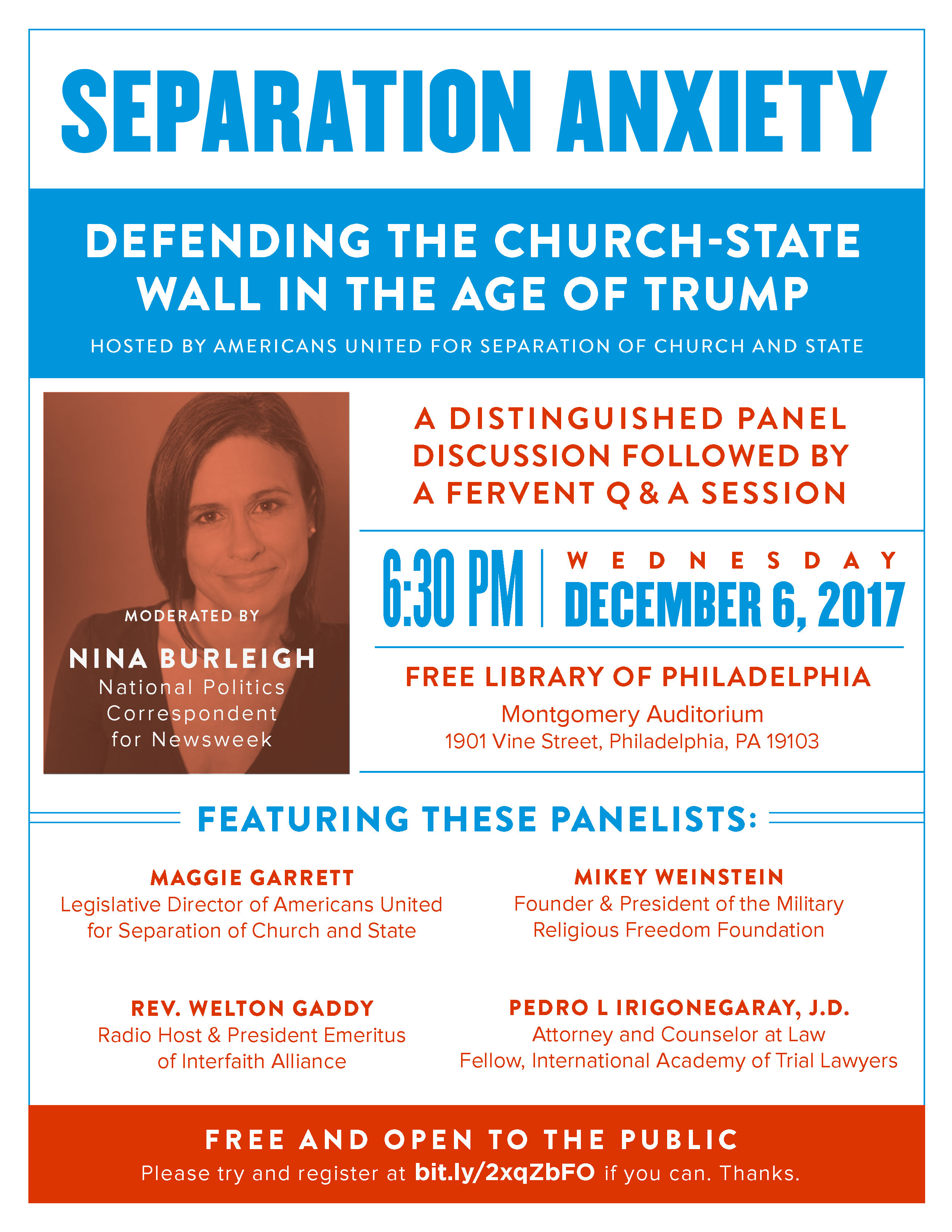 MRFF AND AMERICANS UNITED BRING LIVELY PANEL ON TRUMP, CHURCH/STATE SEPARATION TO PHILADELPHIA