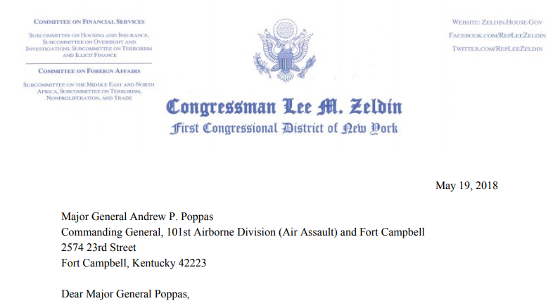 U.S. Republican Congressman Sends Maj. Gen. Poppas Letter in Response to MRFF's Formal Complaint re: Dismissal of