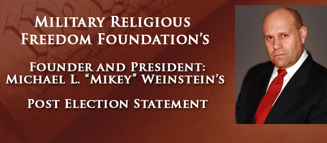 As a direct result of the Presidential election last evening, the Military Religious Freedom Foundation (MRFF) has been completely inundated today with a multitude of active duty (and veteran) service members anxiously requesting to become MRFF clients. They all share one thing in common; fear of unbridled fundamentalist Christian oppression emanating from the new, incoming Trump Administration. Nearly 70% of them are from practitioners of the Christian faith itself.