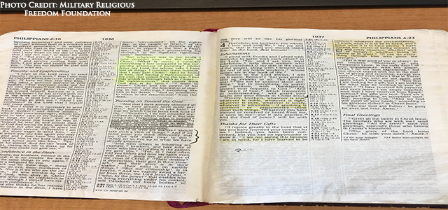 Remember the brouhaha over the open Bible at a work station at Peterson Air Force Base?