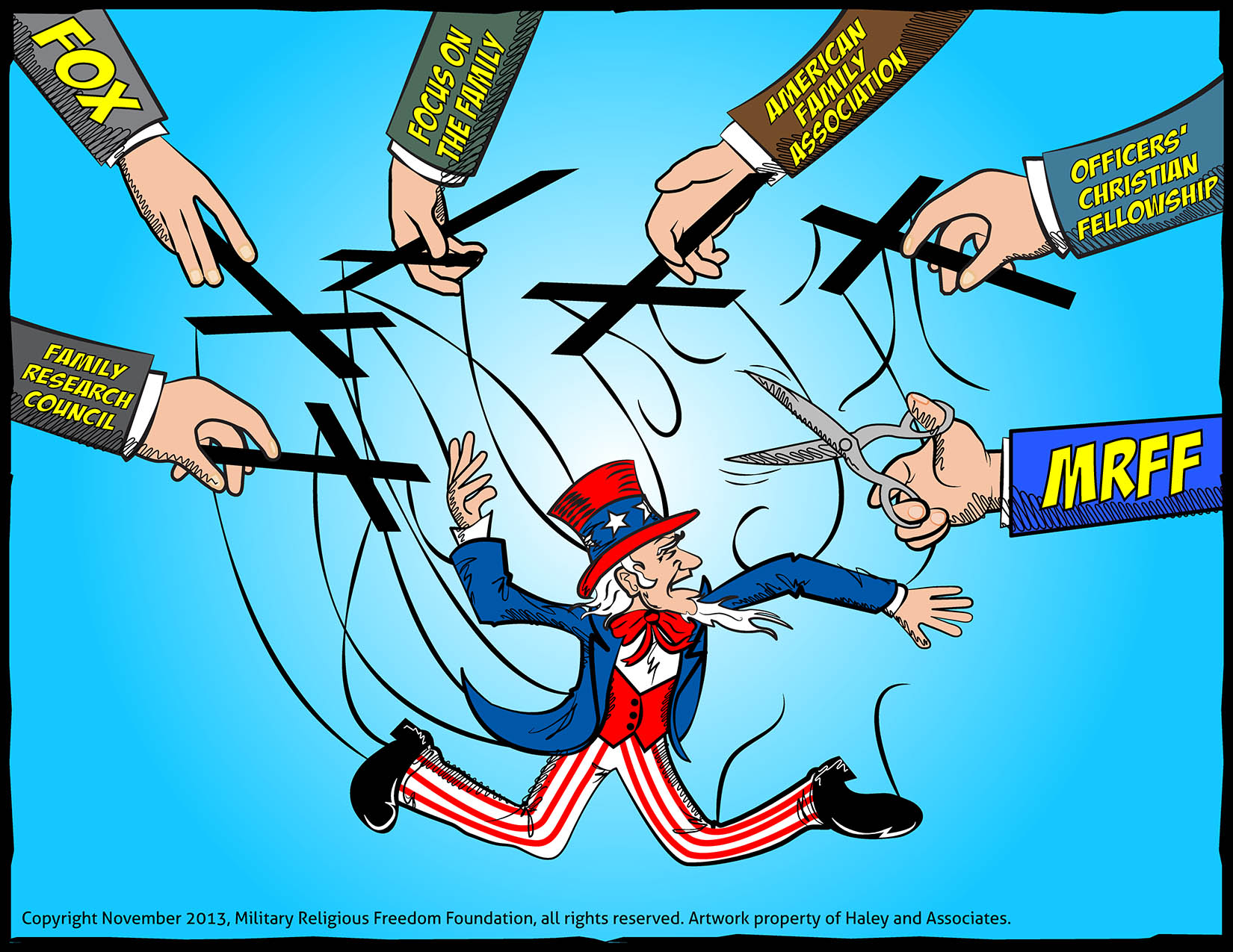 It goes deeper than that. MRFF has been so successful in the past few years that these Christo-fascist groups have formed a coalition called the Military Freedom Coalition. They have mirrored their website to appear as if they are fighting to defend religious liberty when in actuality they are the same theocratic groups that help to undermine the Establishment Clause of the Constitution. Here is their website www.militaryfreedom.org