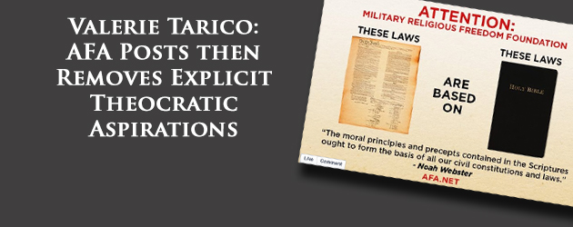 VALERIE TARICO – American Family Association Posts then Removes Explicit Theocratic Aspirations