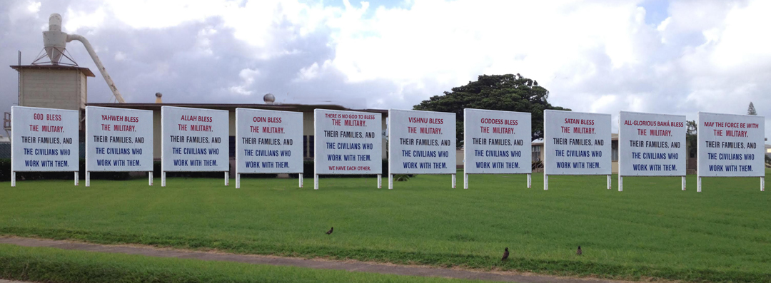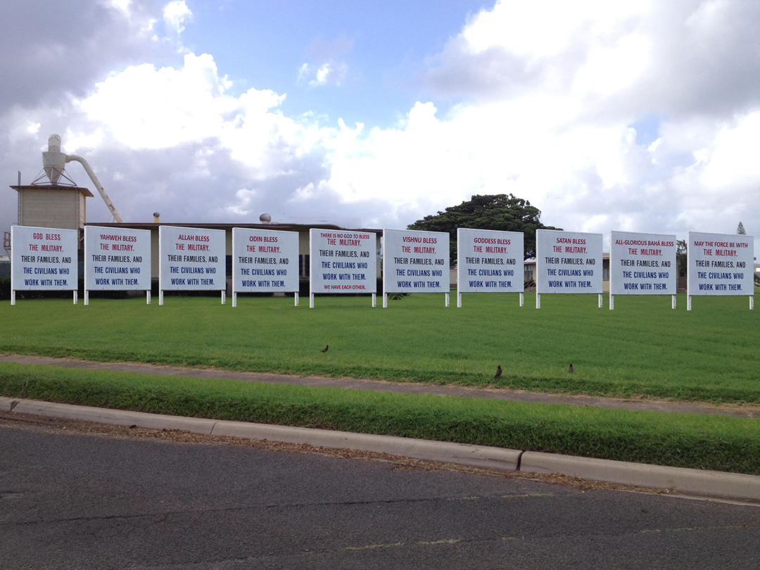 So, if the billboard is moved to the chapel. Ba’i, Jedi, Satanist, Jain, Hindu, Buddhist, Muslim, Jewish, FSM, atheist, etc. troops could all request billboards to be erected on chapel grounds. Same problem, just a more appropriate location.