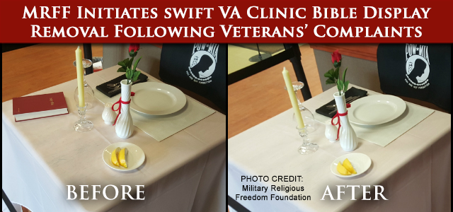 I must confess to flunking English grammar and essay writing twice… no wait – three times. Once in High School, and twice in college (different schools). That said perhaps someone can help me understand why Todd Starnes is allowed to state at the beginning of his article that only the MRFF had an issue with the Bible (a dubious claim he writes) on the MIA table and then not even half a page down later he writes that the Commander removed the Bible after discussions with volunteers because several veterans had expressed concern.
