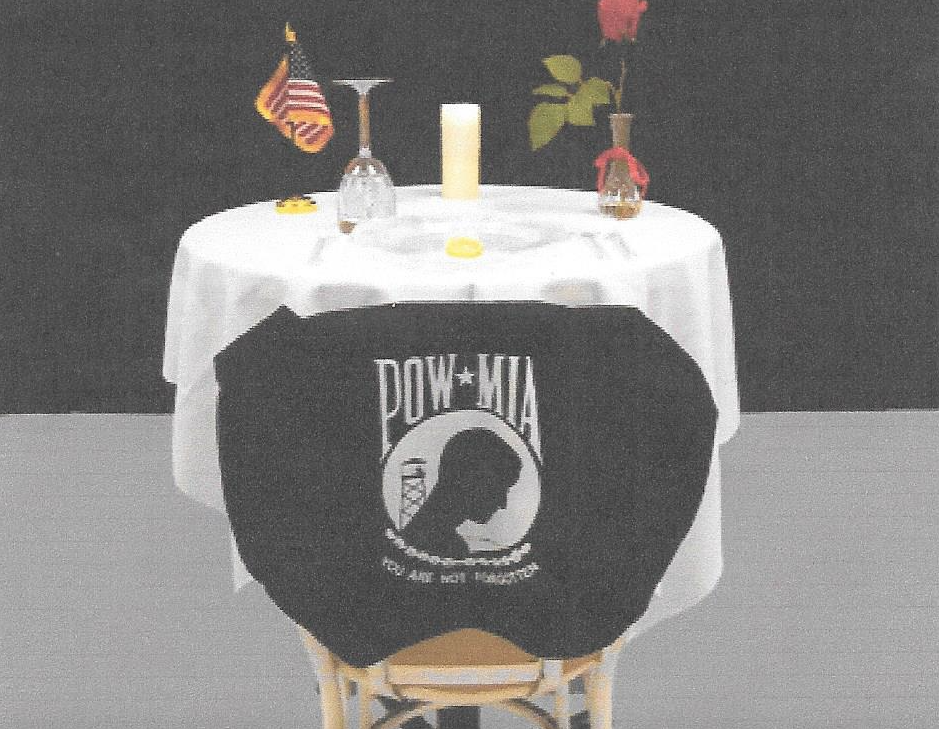Originated in 1967 by a group of our Vietnam War combats pilots, the River Rats, without religious scripture and continued thereafter by the American Legion without religious scripture, the POW/MIA display purpose was and is to leave a place at the dinner table for those military comrades and not forget them. It has always been about remembrance – not about religion. Religious scripture can be placed in the hospital chapel for those who want to see it.