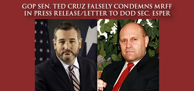 6/10/20 – GOP SENATOR. TED CRUZ FALSELY CONDEMNS MRFF IN PRESS RELEASE AND LETTER TO U.S. DoD SECRETARY MARK ESPER
