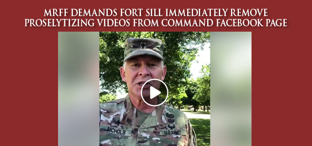 6/5/20 – MRFF Demands Fort Sill Immediately Remove Proselytizing Videos From Command Facebook Page