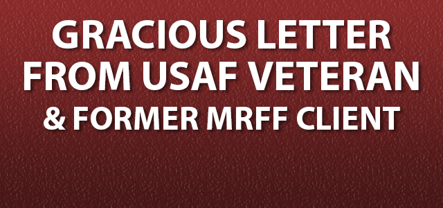 My name is (name withheld) and I am a proud Air Force Veteran and current employee with the VBA Regional Office in Portland, OR. As a former client of the MRFF, it brings me tremendous pleasure to be making a donation to your organization that does such amazing work for our service members and veterans. As I remember, I contacted the MRFF on a Saturday in October of 2016, and I quickly received desperate help with my case against the Phoenix VA Hospital. I felt like the world was lifted off my shoulders. Your organization provided me the relief, peace of mind, and justice I was looking for. Thanks again for all your hard work. Please consider me a strong ally to your organization and I look forward to making more donations to the MRFF in the future!