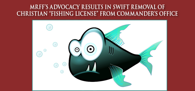 11/10/20 – MRFF’s Advocacy Results in Swift Removal of Matthew 4:19 Christian “Fishing for Men License” from USAF Commander’s Office