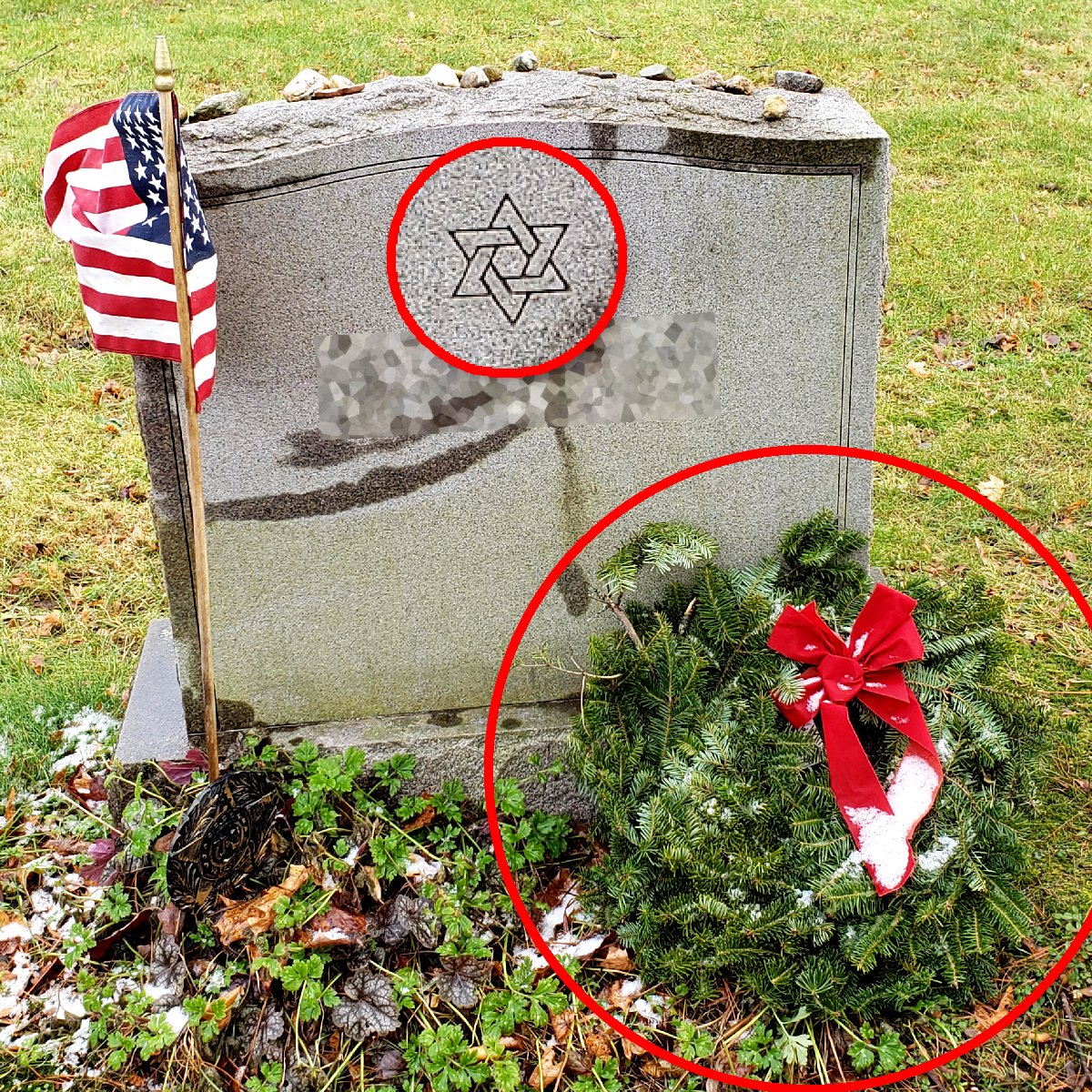 My father would have been furious to find a wreath on his grave. He was a proud Jewish, Brooklyn-born Marine. At least the stones placed on the headstone were not removed.