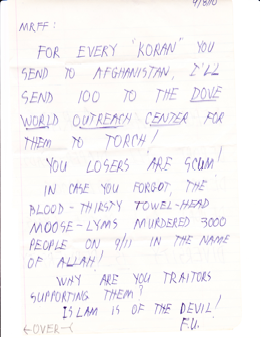 MRFF Imagery – The first 7 images are Hate Mail that was sent directly to Mikey Weinstein; the rest display the Christian Fundamentalist/Dominionist presence within the U.S. Military: