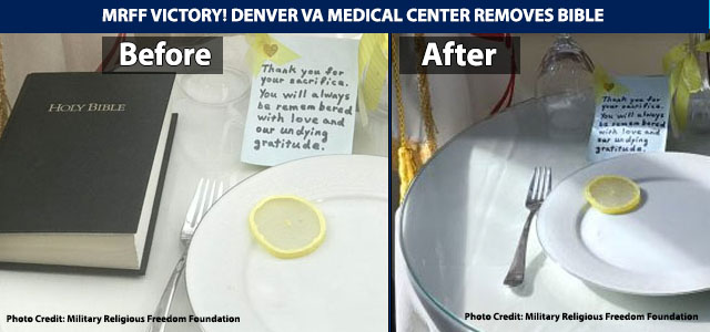 Ms. Barker mentioned that, to the Denver VA’s knowledge, it was possible that none of its VA staff had placed the bible there and that perhaps a patient or someone else had done so. We have heard the same thing from other VA medical facilities and military bases before which we at MRFF have engaged over the very same matter. In fact, please see the list below: